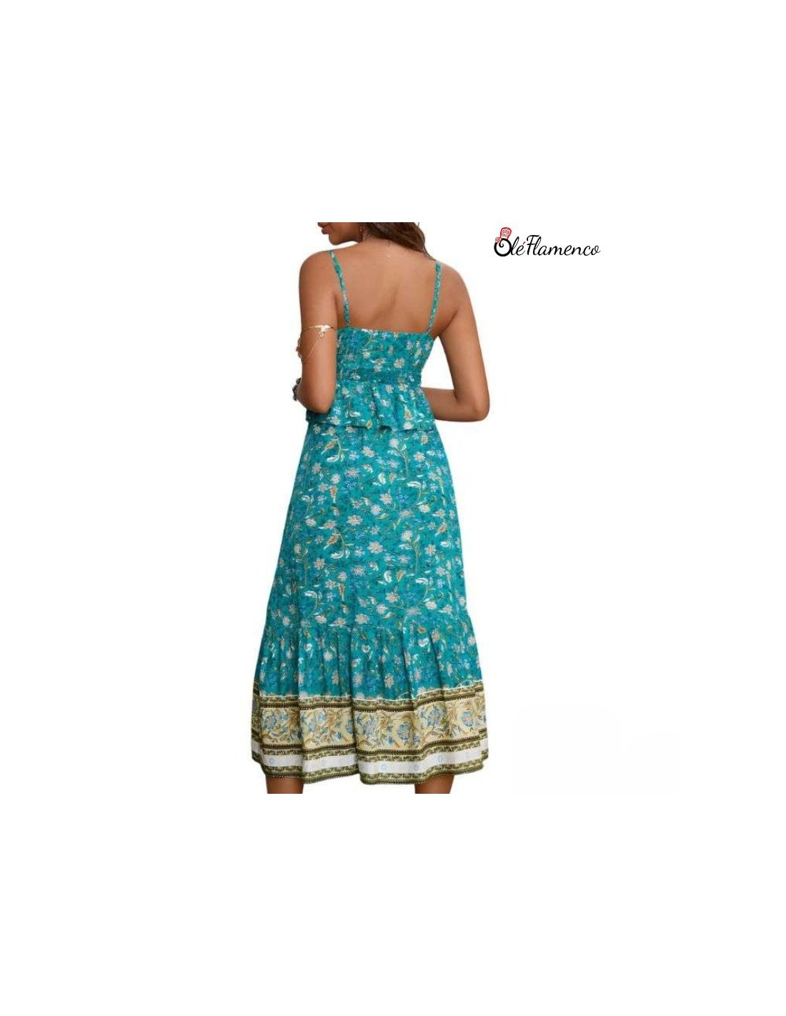 Falda Sirena Flamenca Floral en Tejido Elástico Ligero-Verde-