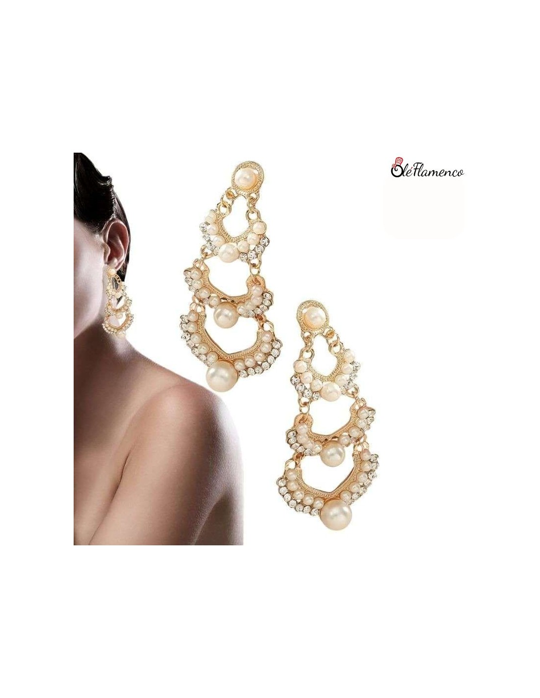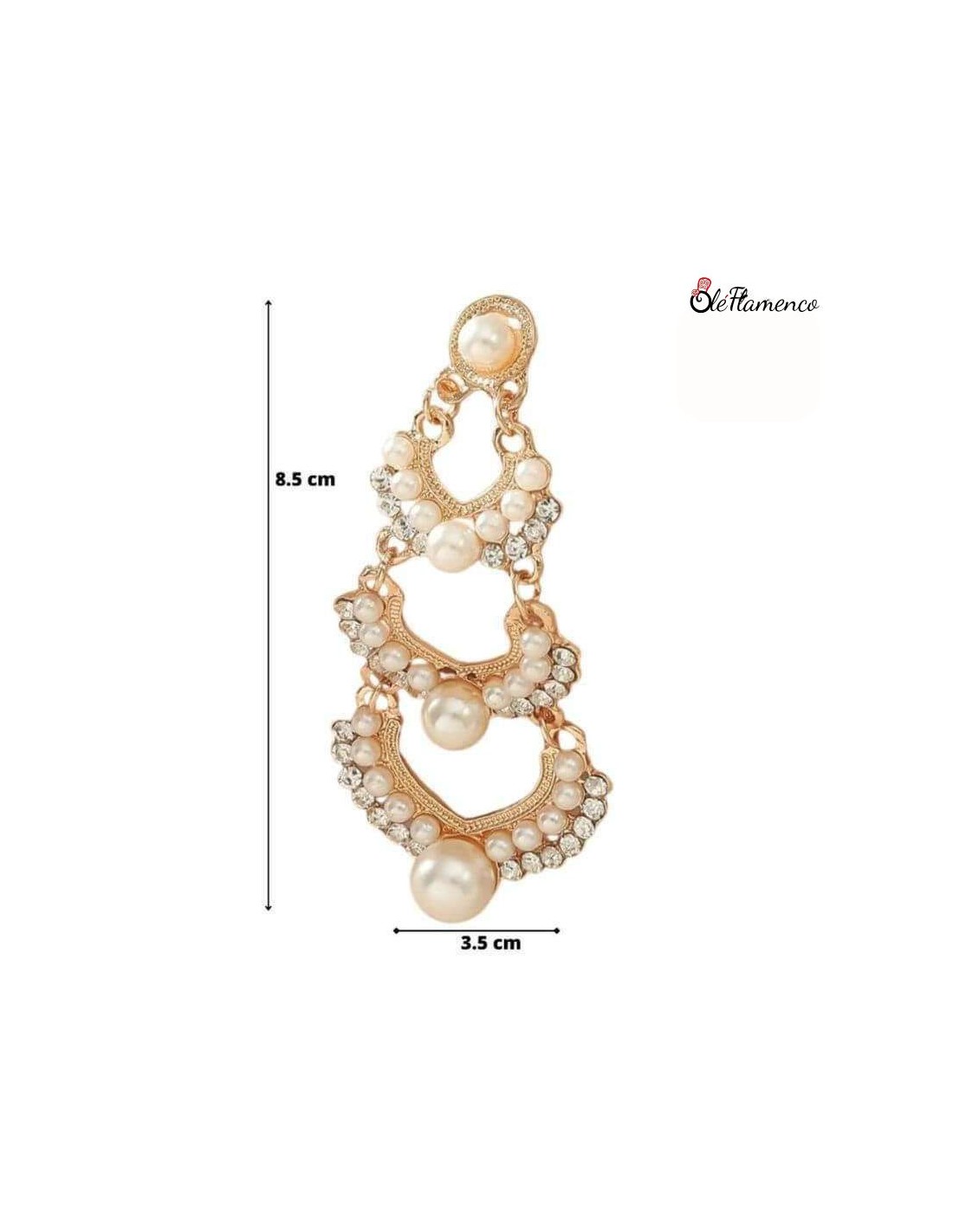 Nuestros pendientes de flamenca de tres aros dorados con diseño de diamante de imitación yperlas son la elección perfecta para cualquier vestido flamenco. Con su diseño elegante y detalles exquisitos, estos pendientes son un acierto.