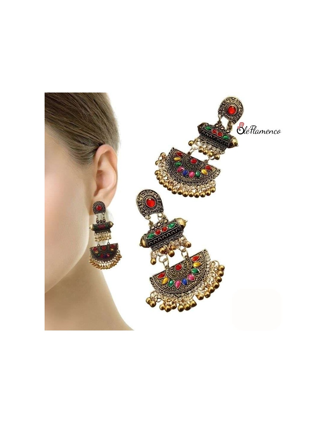 Pendientes de flamenca aro con flor dorada son el accesorio ideal para añadir un toque de originalidad a tu look flamenco. Con un diseño elegante y detallado.