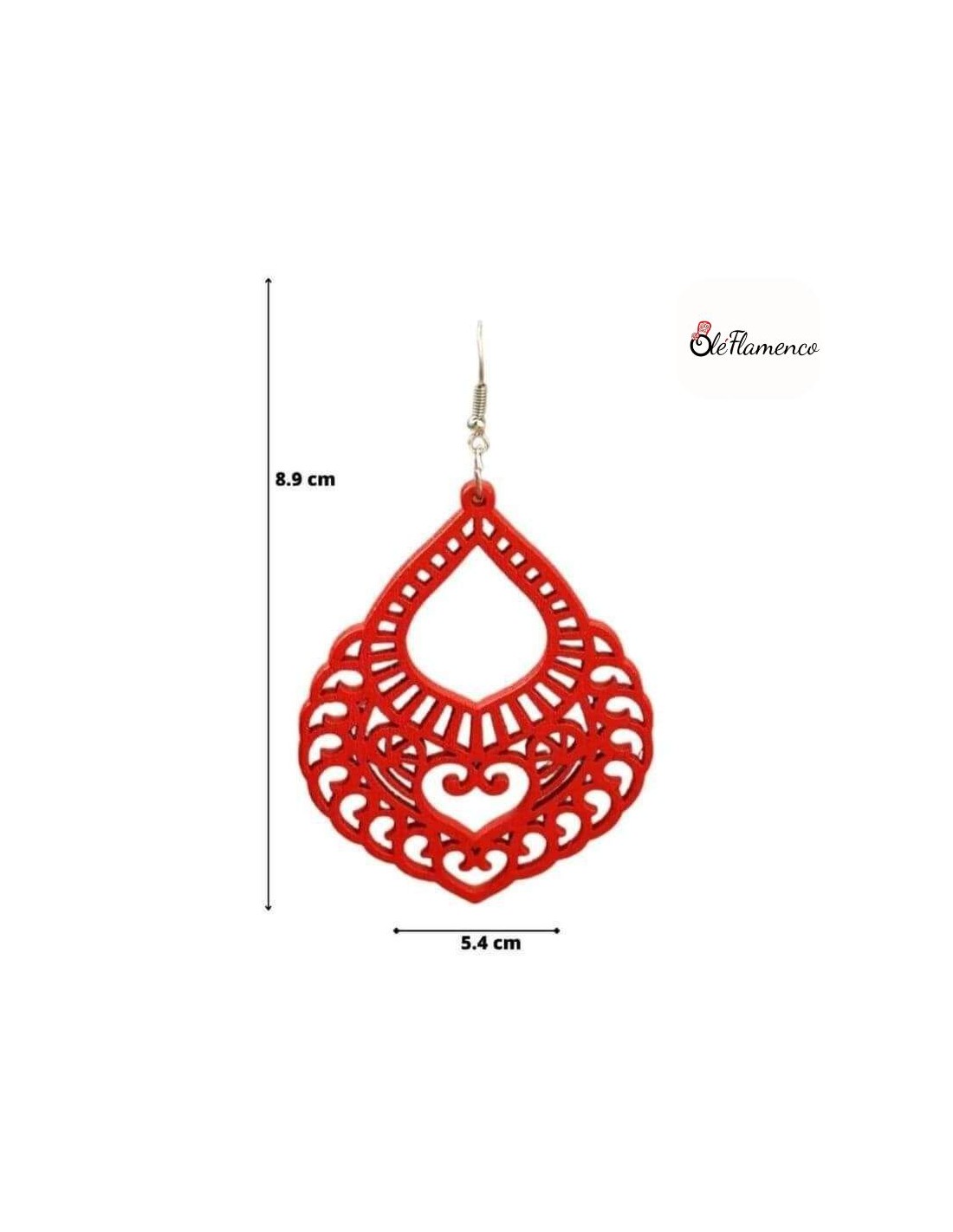 Completa tu look flamenco con estos elegantes pendientes de madera con diseño de repujado artesanal en color rojo. Fabricados con madera de alta calidad, estos pendientes son ligeros y cómodos de llevar durante horas de baile flamenco. El diseño de repujado en madera los hace únicos y auténticos, y su color rojo vibrante aportará un toque de pasión y alegría a tus pendientes de flamenca. Hazte con estos pendientes de madera para un look distintivo y cómodo en cualquier evento flamenco.