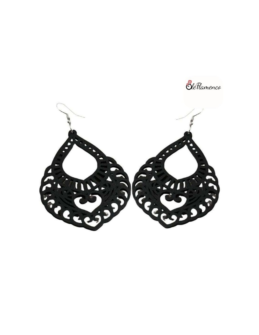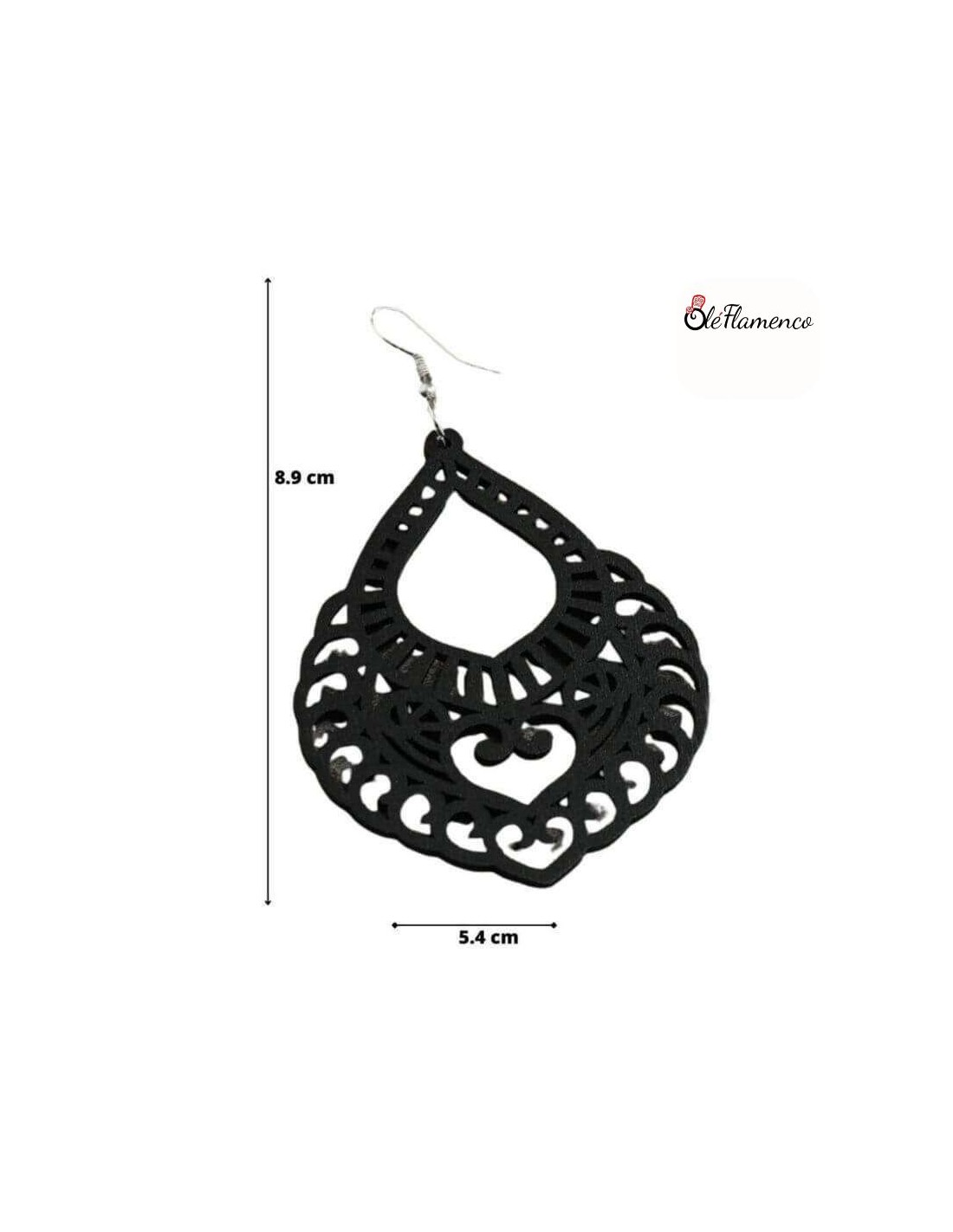 Completa tu look flamenco con estos elegantes pendientes de madera con diseño de repujado artesanal en color negro. Fabricados con madera de alta calidad, estos pendientes son ligeros y cómodos de llevar durante horas de baile flamenco. El diseño de repujado en madera los hace únicos y auténticos, y su color rojo vibrante aportará un toque de pasión y alegría a tus pendientes de flamenca. Hazte con estos pendientes de madera para un look distintivo y cómodo en cualquier evento flamenco.