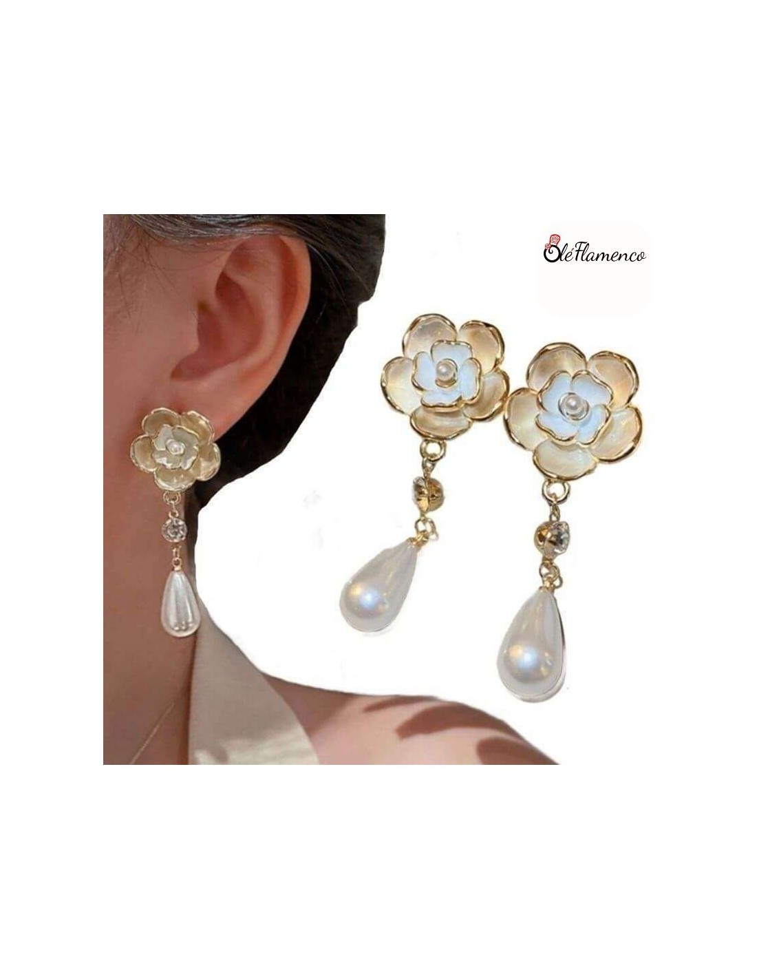Pendientes de flamenca Flor con lagrima de perla