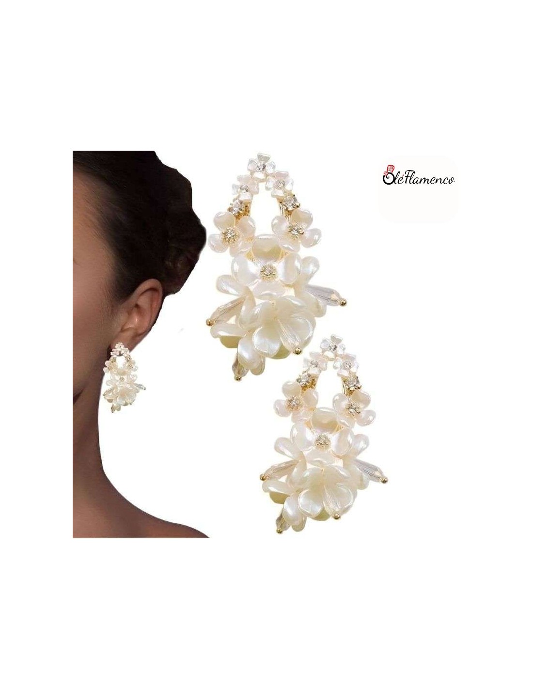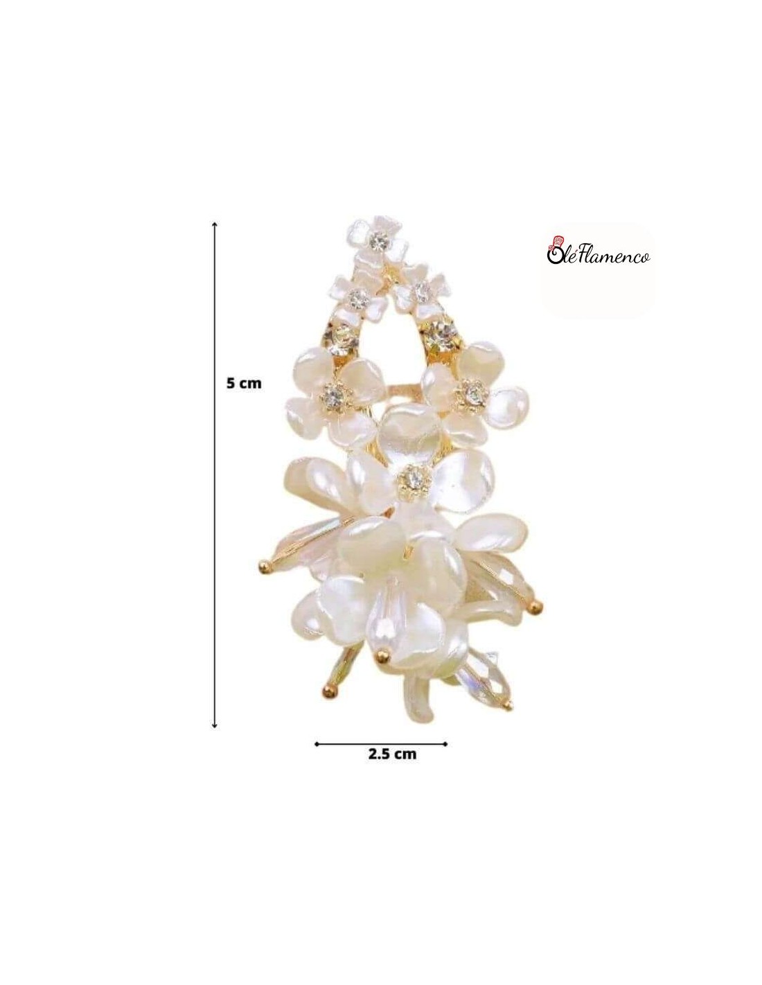 Pendientes de flamenca con diseño de flores con diamantes de imitación anacarados y perlas en forma de gotas son la elección perfecta para añadir un toque de brillo a tu look flamenco.