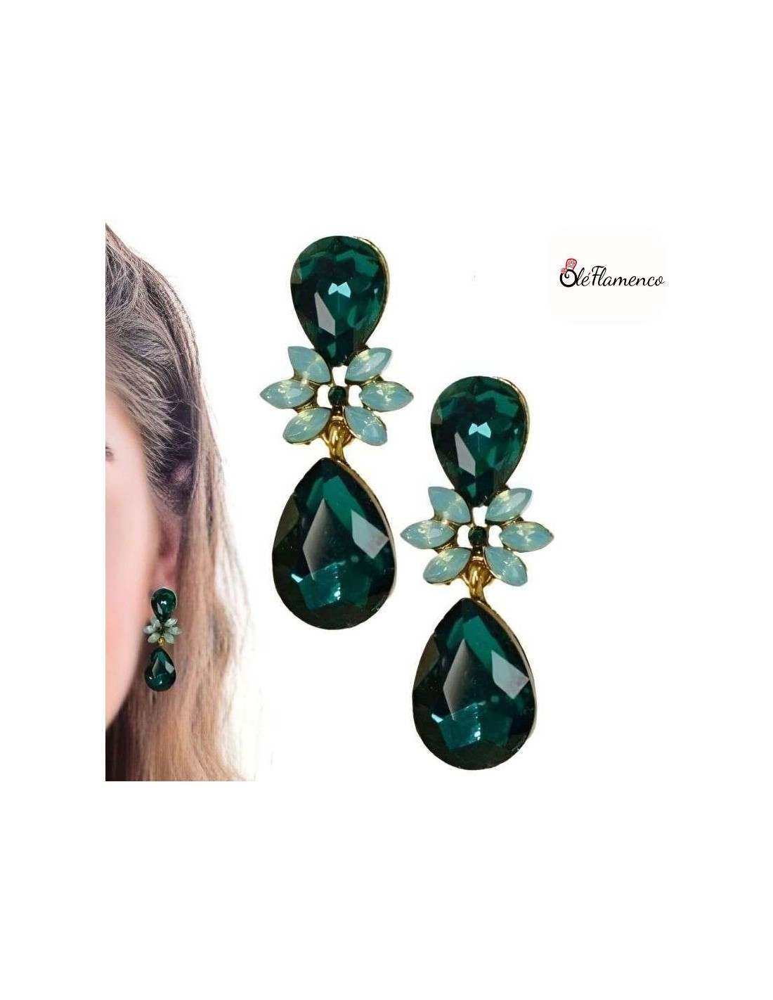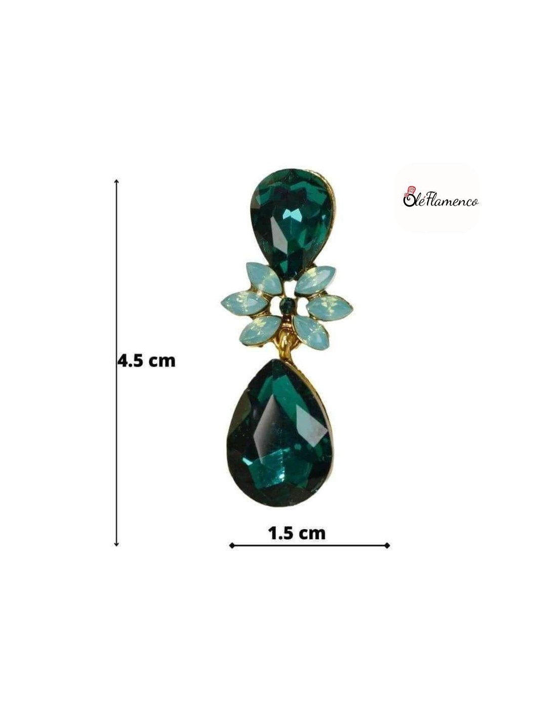 Pendientes de vidrio con diseño de lagrima en verde, perfectos para añadir un toque de elegancia y distinción a cualquier outfit. ¡Añádelo a tu colección de joyería flamenca!
