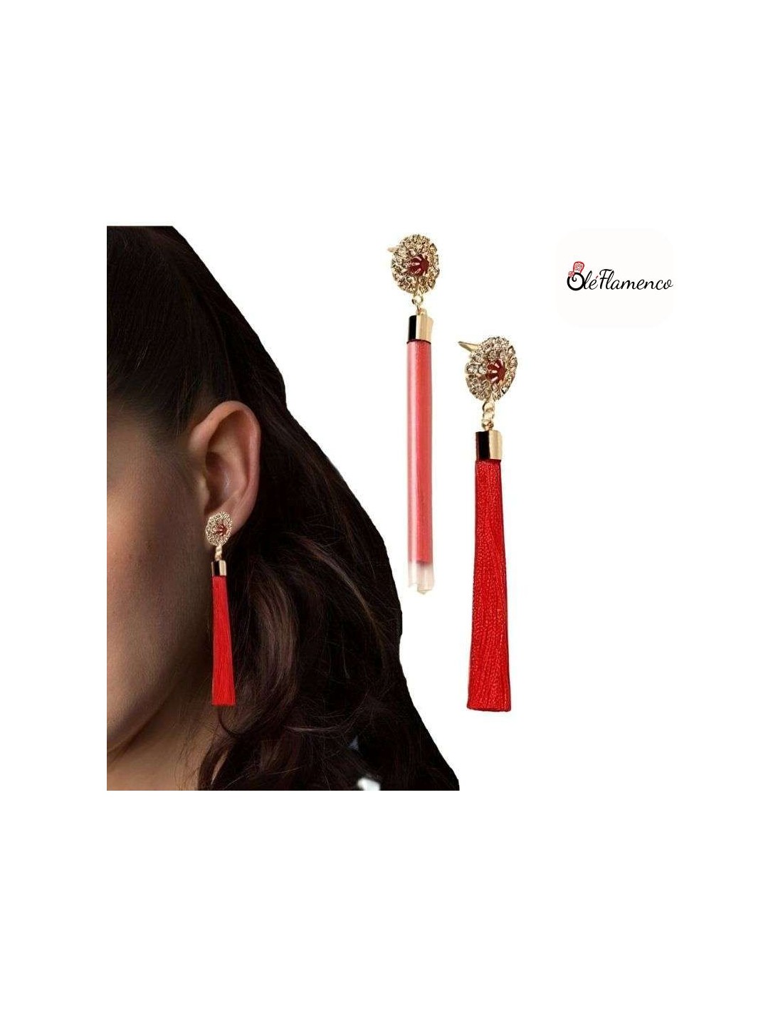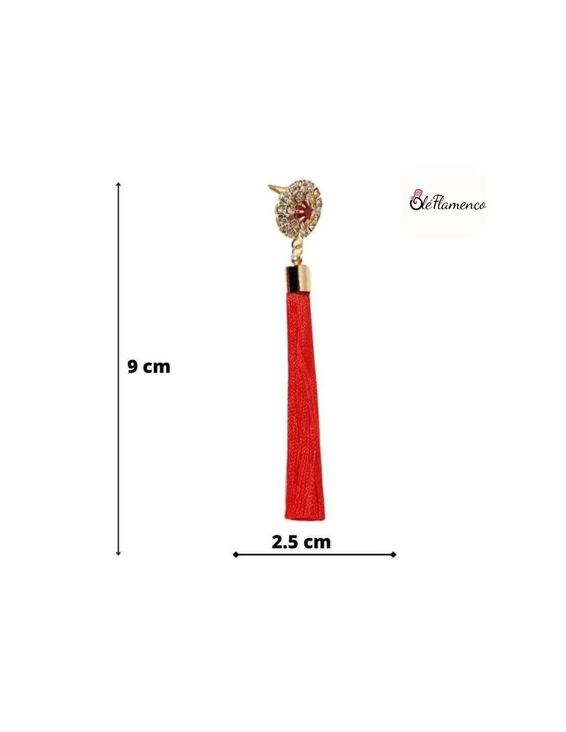 Pendientes de flamenca con diamantes de imitación con flecos de poliéster en color rojo son el complemento perfecto para añadir un toque divertido y llamativo a tu estilo flamenco. Con un diseño lleno de movimiento, estos pendientes son entregados en un tubo seguro para protegerlos durante el envío ¡Añade un toque de brillo y diversión a tu estilo flamenco con estos pendientes!