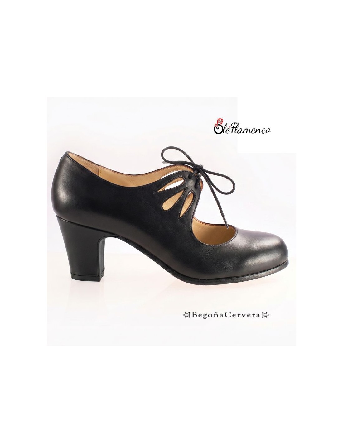 Zapato Flamenco Profesional Begoña Cervera | Piel Negra Calada con Cordones